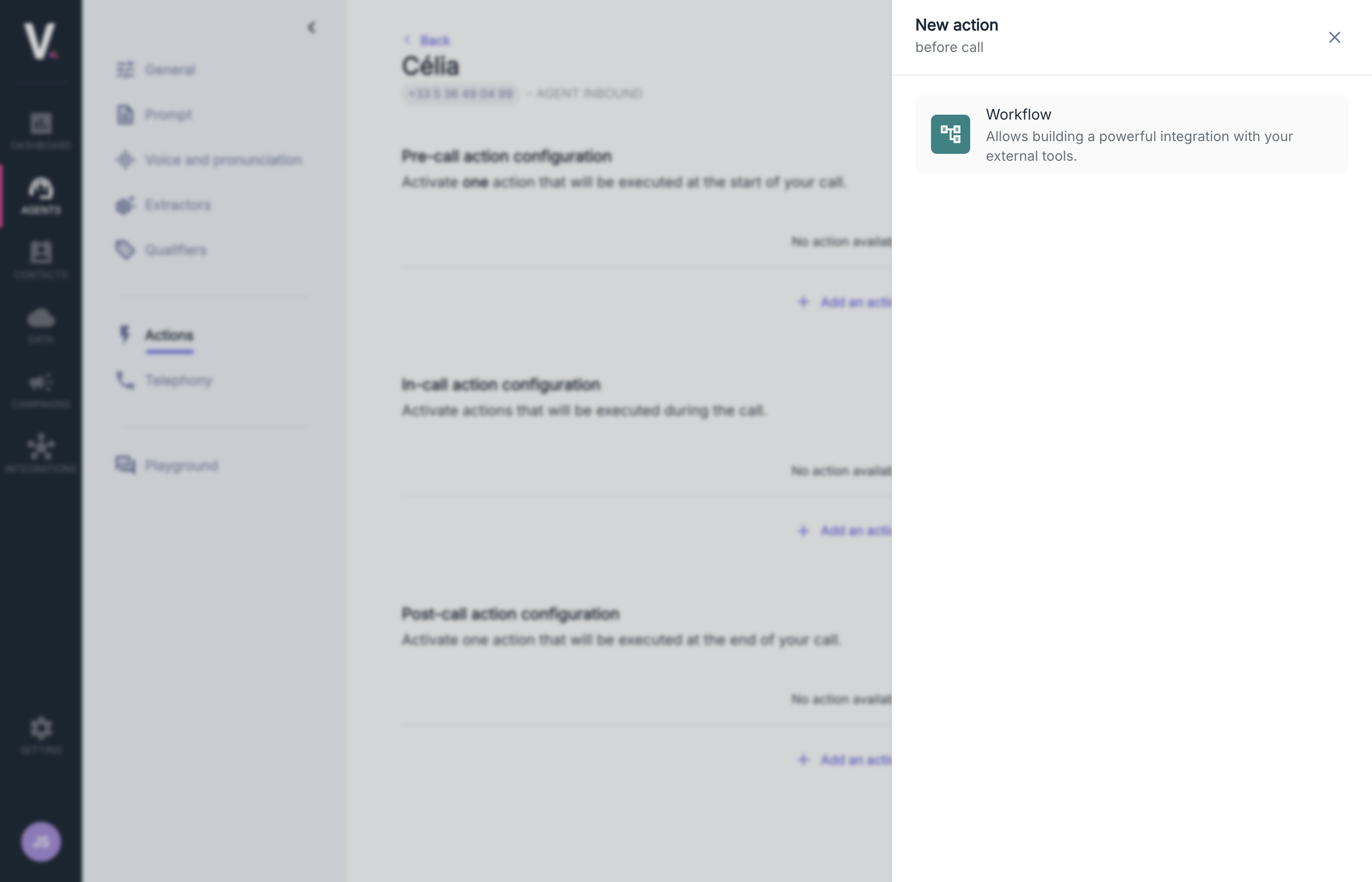 Allows you to build a powerful integration with your external tools before your calls.Configure Workflows Before the Call