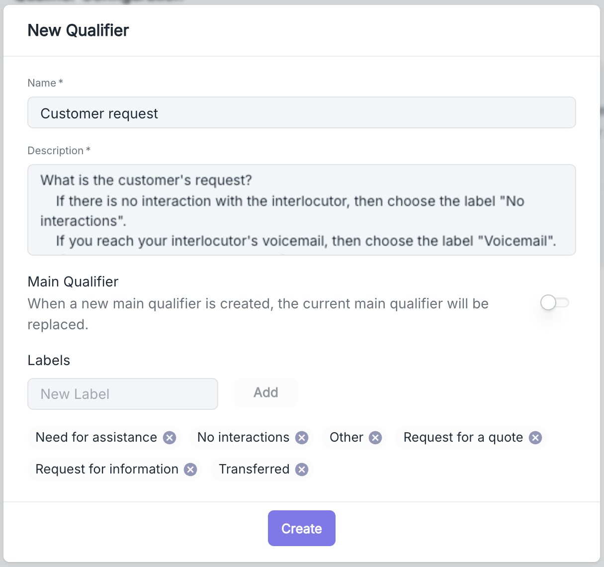- Description: Instructions that will guide the voice agent in choosing the appropriate label
