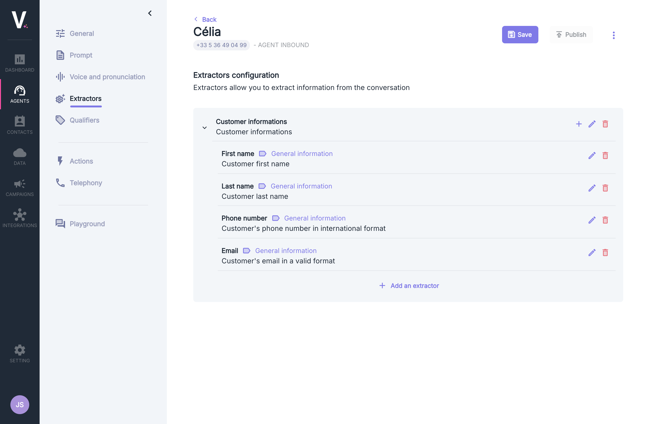 To create a new extractor, follow these steps:- Go to the “Extractors” tab in your Volubile dashboard